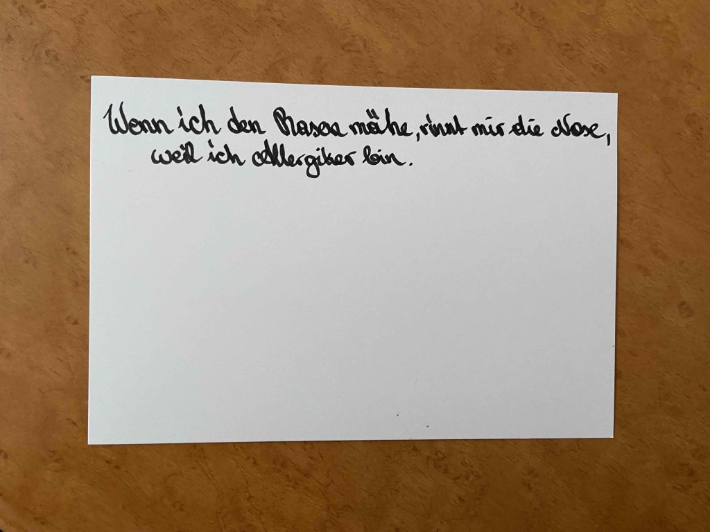 Wenn ich den Rasen mähe, rinnt mir die Nase, weil ich Allergiker bin.